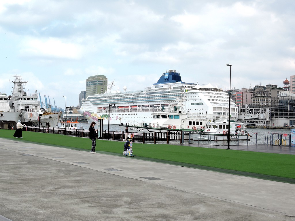 郵輪在台灣基隆港東岸碼頭出發